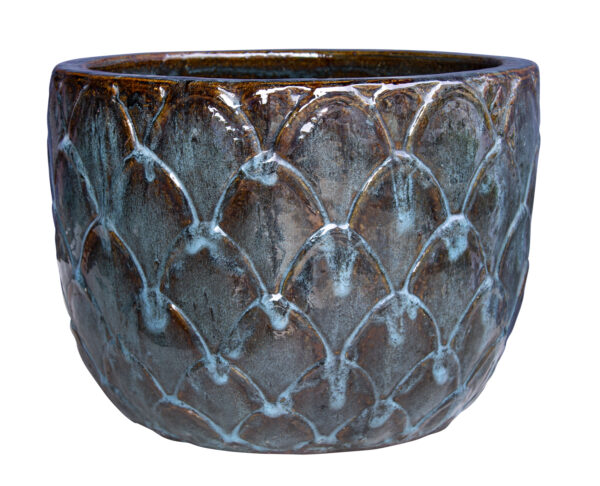 Vores blankt glaserede krukker er produceret i Vietnam. De skabes i en gipsform med ler, som graves op af Mekongdeltaet. Alle vores glaserede krukker er brændt ved 1200 grader og er derfor frostsikre. Krukkerne er udstyret med passende drænhuller og kan stå ude hele året.
